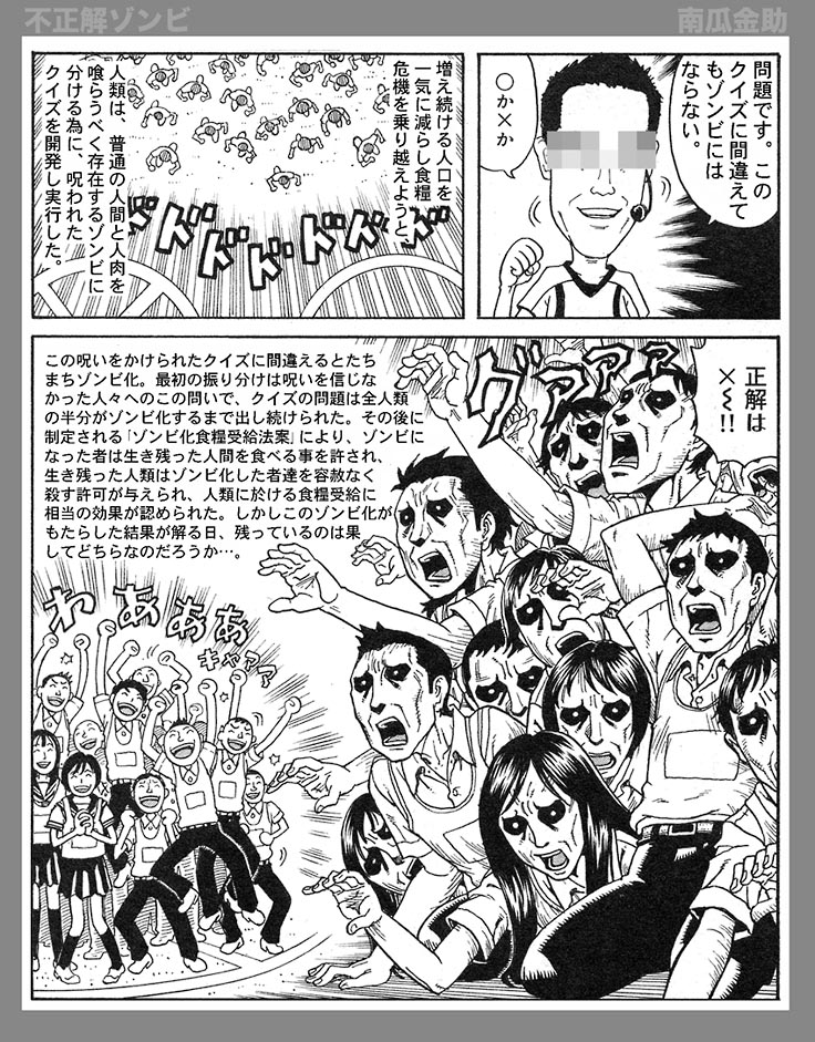 →私的暫定ゾンビランキング(〜2014)ホラ〜映画は好きでゾンビにも興味はあったのですがリメイク「ドーン・オブ・ザ・デッド」(2004)を見てからというものモノスゴク好きになってしまいました。好きと言うだけでマニアックという程の知識はありませんけれど。そんな訳でゾンビ熱発症からは日が浅いのですが、以来、ゾンビ漫画家になるのが夢です。「南瓜金助」と言うペンネームでちょっとした漫画を描かせて頂いたりもしていました。